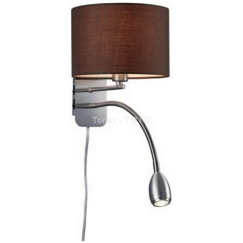 Nástenné svietidlo Hotel s dvomi zdrojmi svietenia z kovu a textilu v hnedej farbe. Smer jeho svetla je možné nastavovať. Svietidlo je vybavené spínačom. Použité kvalitné LED svetelné zdroje s 5-ročnou zárukou, a 1 žiarovka so závitom E14 maximálne 40W (nie je súčasťou balenia).