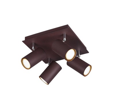 Stropné, kovové svietidlo Marley so štyrmi svietiacimi hlavicami v kovovom prevedení vo farbe niklu. Svetelné zdroje sú 4 žiarovky so závitom GU10 maximálne 35W (nie je súčasťou balenia).