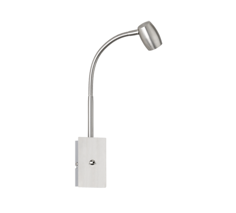 Jednoduché svietidlo MICHAEL vo farbe matného kovu s polohovateľným ramenom. Svietidlo je vybavené spínačom. Svetelný zdroj je žiarovka s päticou GU10 max 18W.